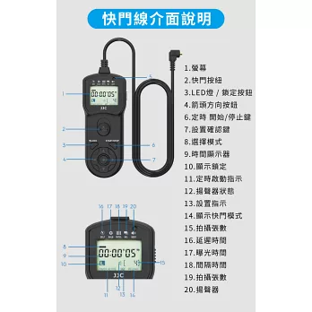 JJC TM-J 液晶定時快門線 O1(Olympus RM-UC1)