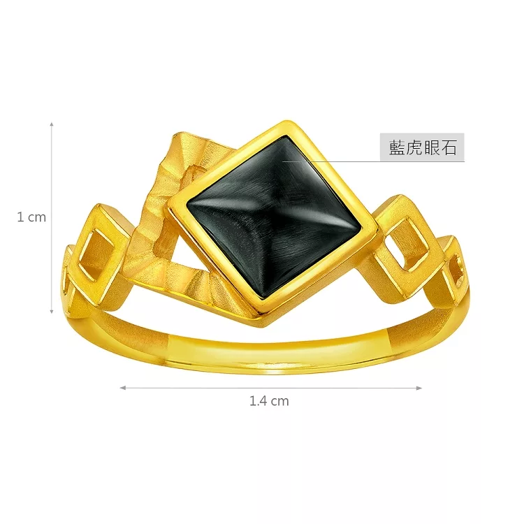 【Just Gold 鎮金店】稜變·黑瑪瑙 AURA 黃金戒指 港圍 19 金色
