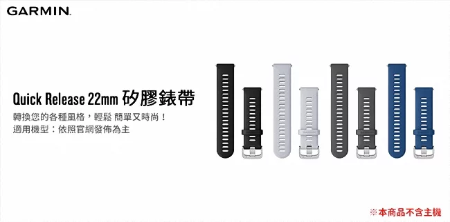GARMIN Quick Release 22mm 矽膠錶帶 透礦黑