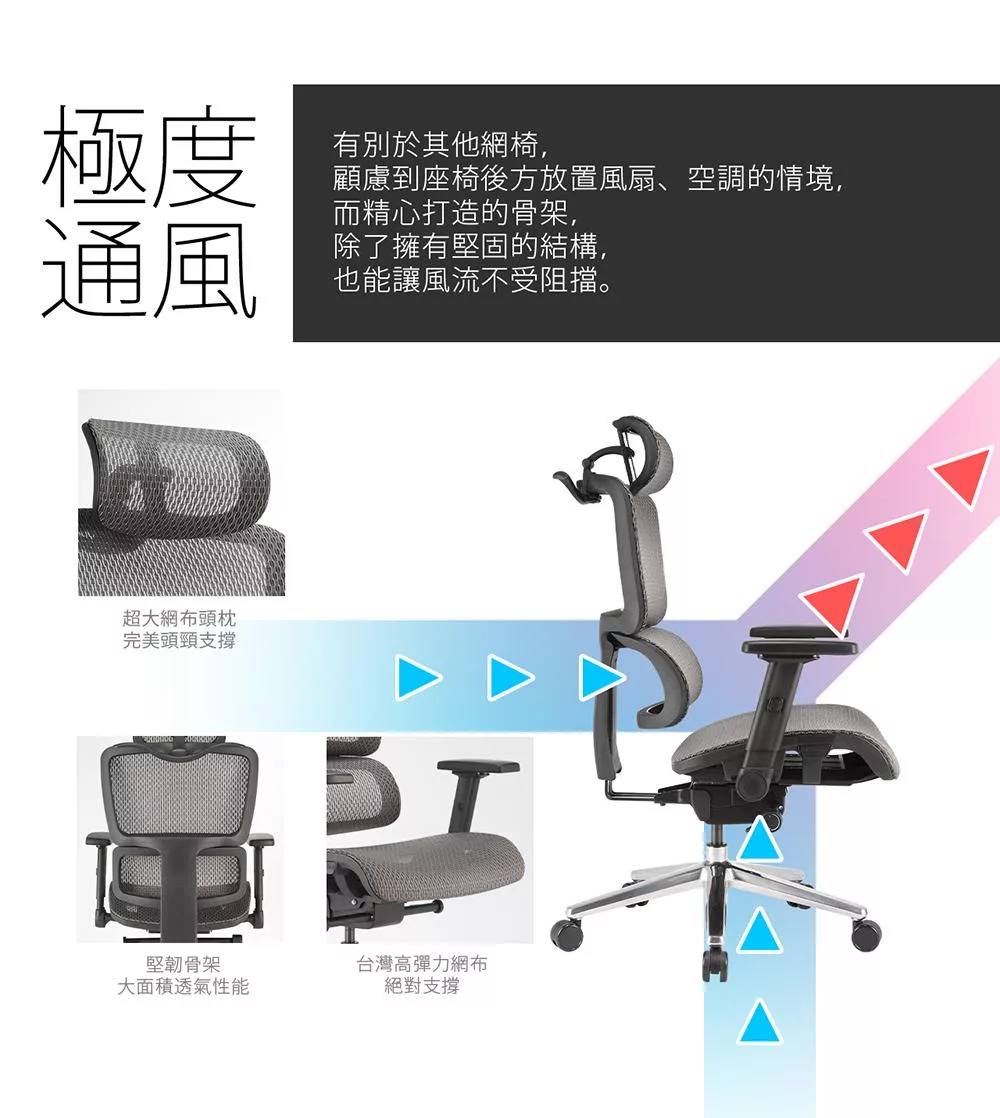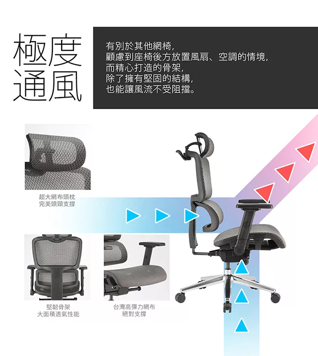 GXG 高背全網 電腦椅 (鋁腳/升降扶手) TW-81X6 LUA5