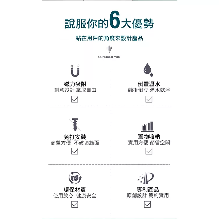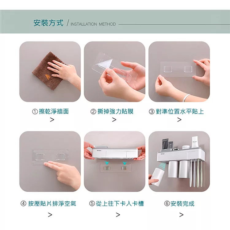 磁吸吸附,拿取方便,刷牙杯懸掛瀝水,防塵乾淨 免打孔無痕安裝,不傷牆面!