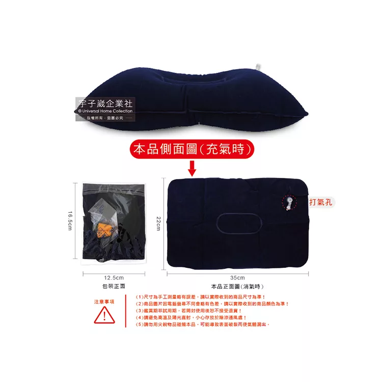 ●充氣型操作簡單,U型貼合頭頸曲線,柔軟親膚,舒適耐用,輕巧便攜!