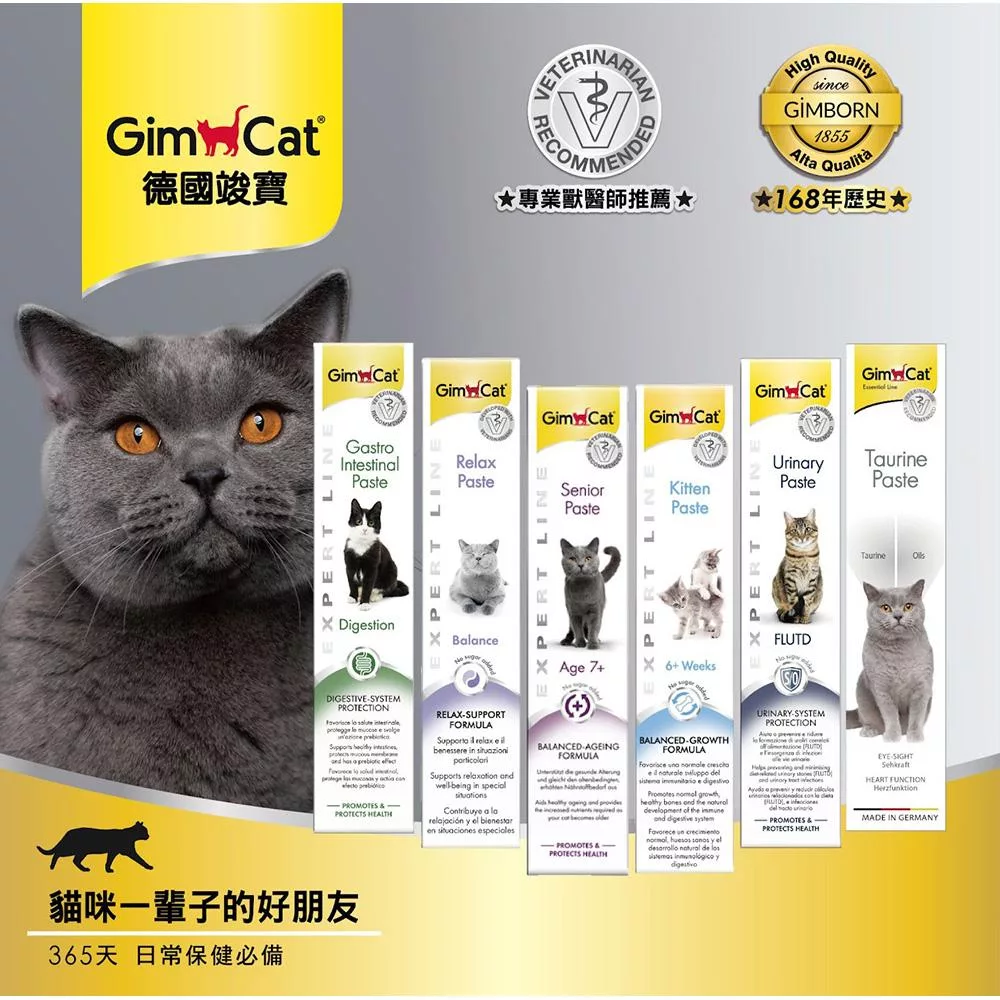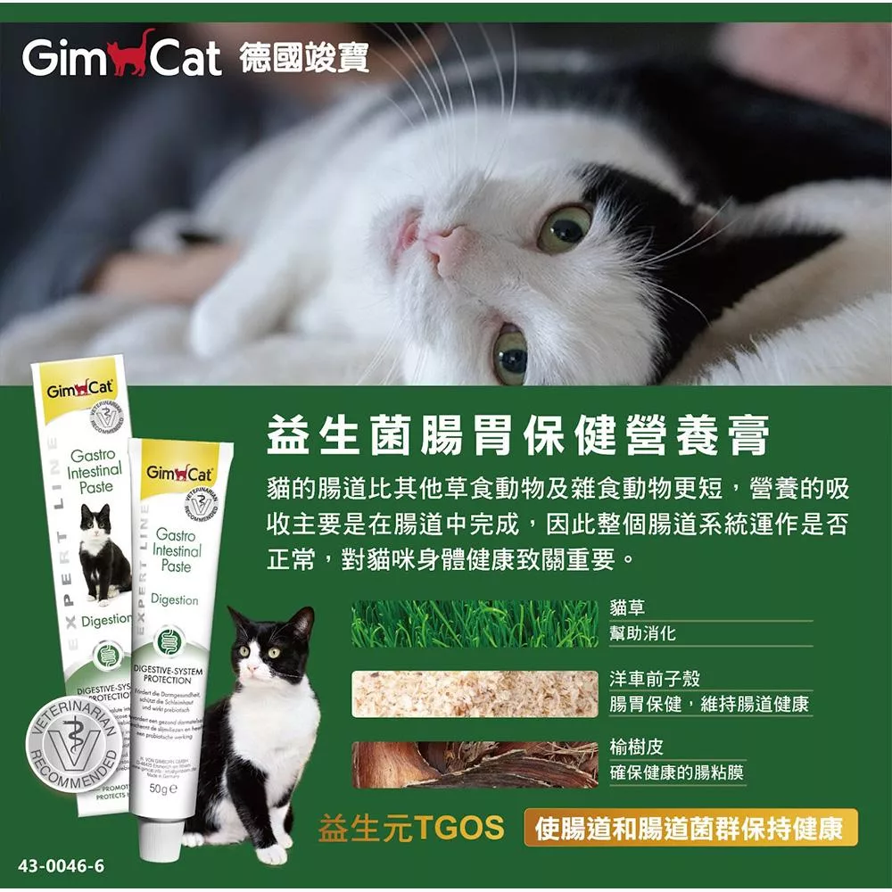 GimCat貓用胃腸保健營養膏含有高質量的活性複合物成分,有助於飲食消化。