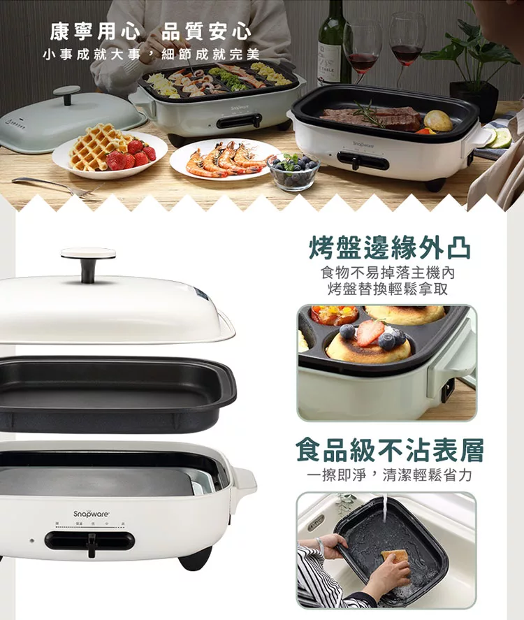 農曆年前配達~倒數中【only】S6超級鍋 食品級不沾多功能分離式烤盤 赫本白(多種配件可選購波紋.章魚.六圓.深鍋.鴛鴦鍋)