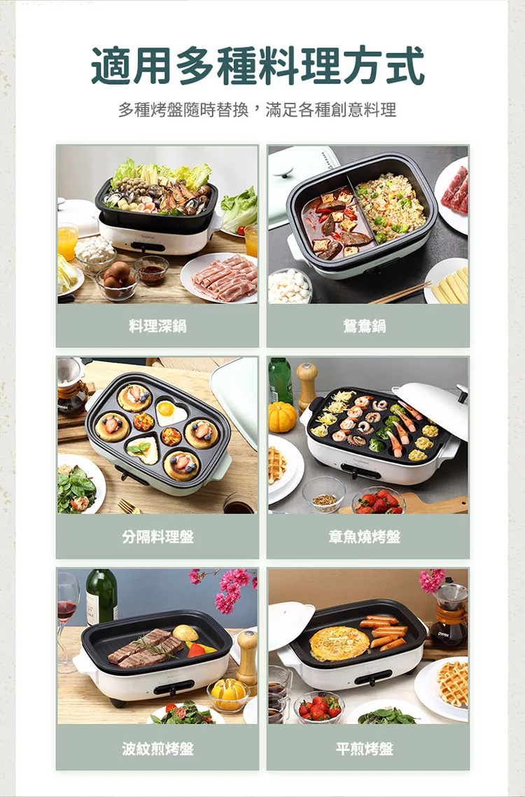 【日本BRUNO】無煙多功能電烤盤 BOE109 火烤多用組(附料理深鍋、減煙烤盤、平面烤盤、章魚燒烤盤、耐熱夾)- 開心果綠