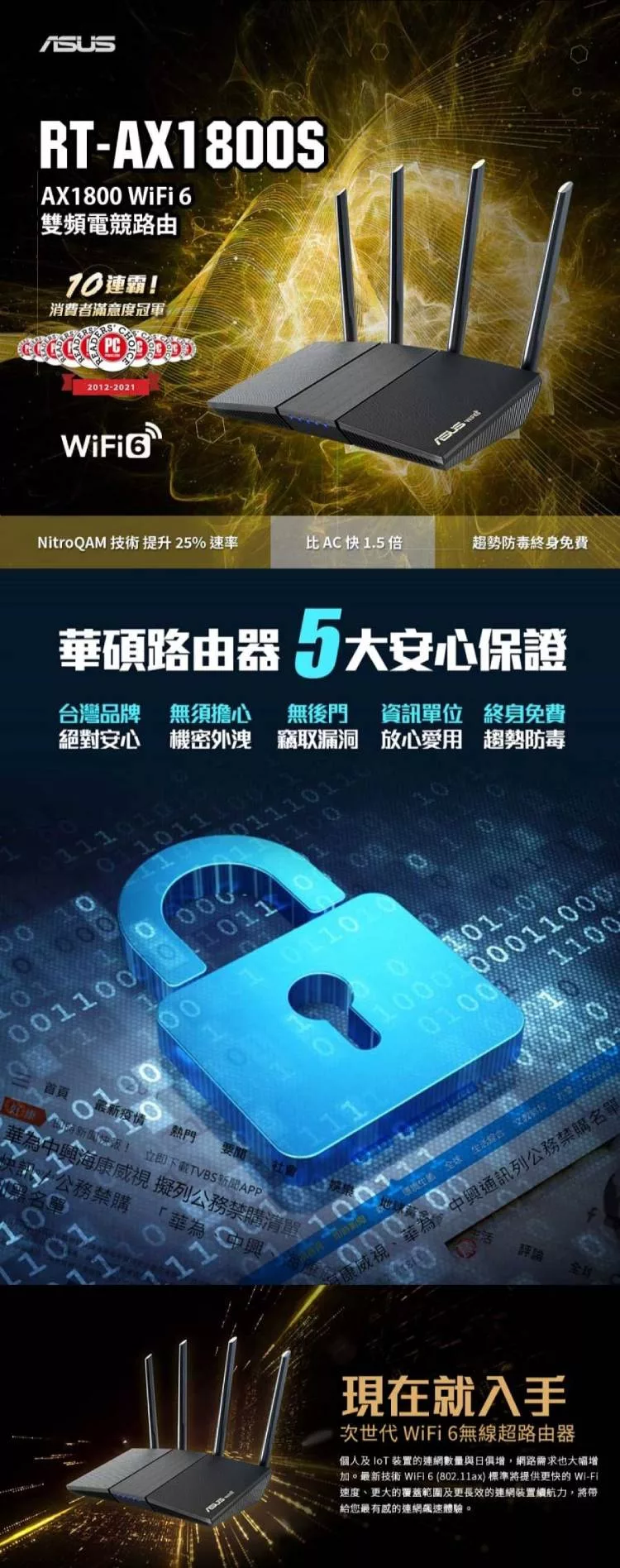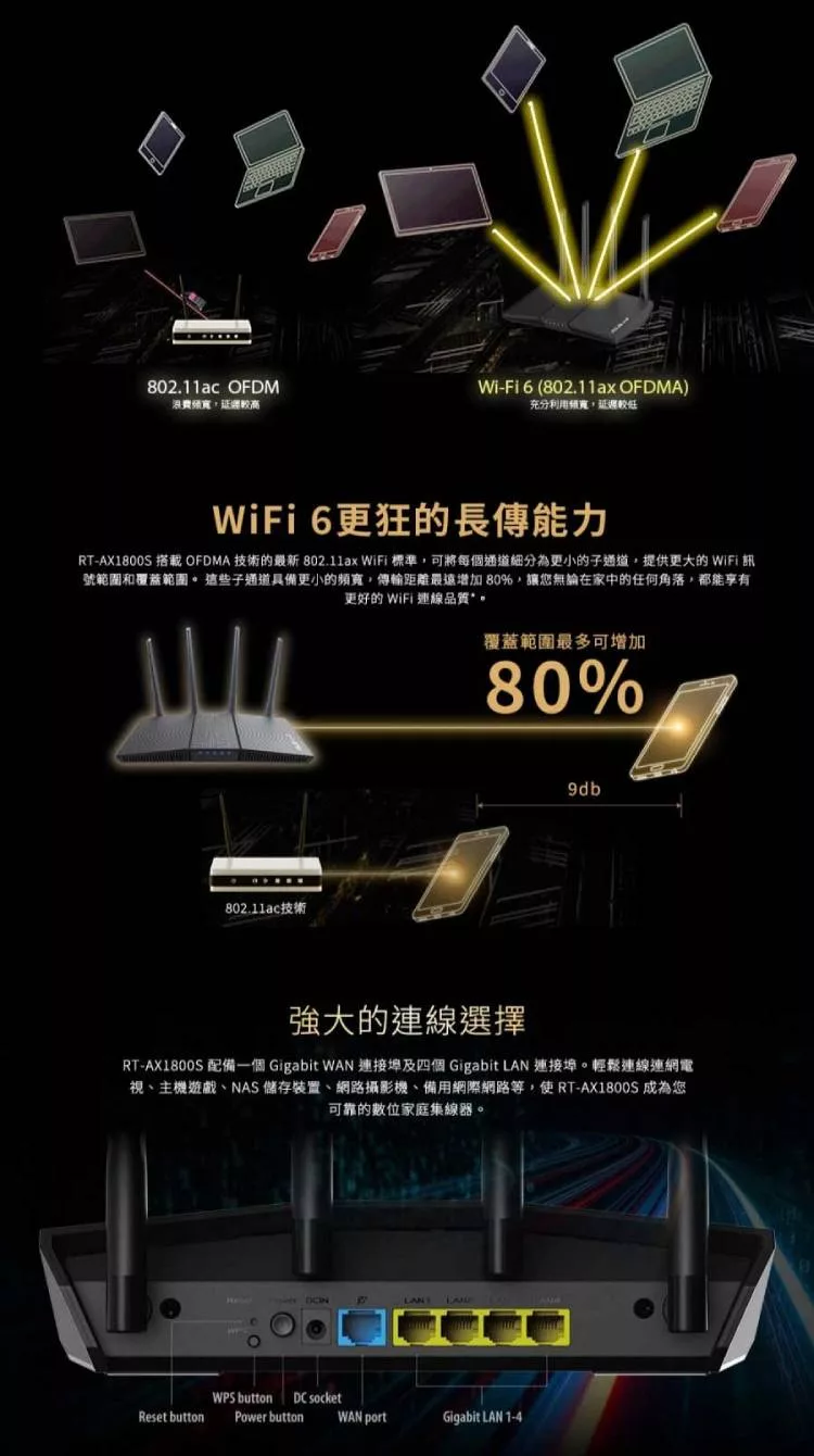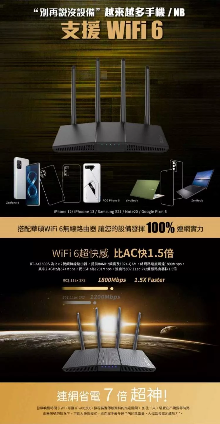 ASUS 華碩 RT-AX1800S 四天線雙頻 WiFi 6無線路由器