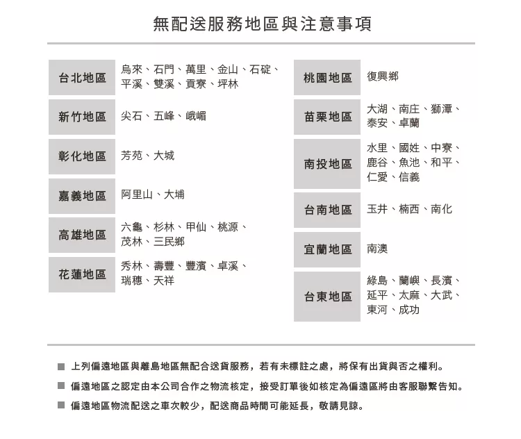 非屬上列品項之商品均享有到貨十天的猶豫期(含例假日)。退回之商品必須於猶豫期內寄回。
