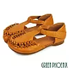 【GREEN PHOENIX】女 便鞋 包頭涼鞋 包鞋 平底鞋 編織 簍空 T字 丁字 沾黏式 EU35 棕色