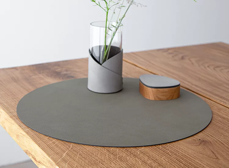 LIND DNA 桌墊外觀看似輕薄,實際觸摸卻感厚實舒服。表面的皮革紋路即具渾然天成的裝飾效果;底面磨製成細絨狀的絨面革,美觀之餘能穩固抓牢桌面不易移位。多用途的美麗桌墊,不應被侷限於餐廚空間,換個情景擺置於辦公室,抑是十分精緻實用的文房器具。