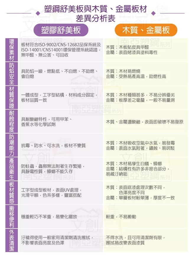 產品採用第一品牌-台製南亞塑鋼舒美板材質
