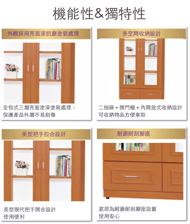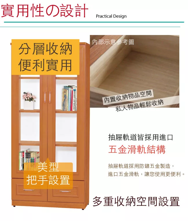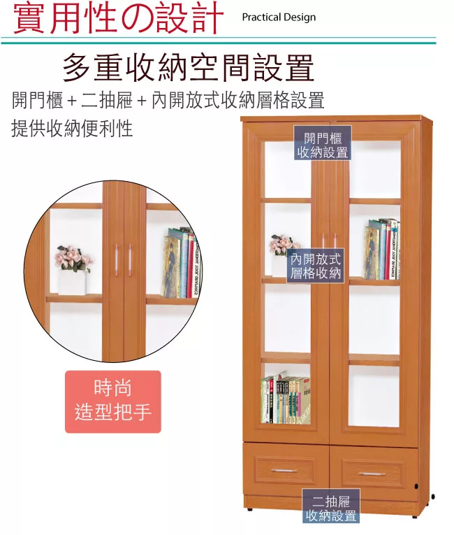 搭配二抽屜+開門櫃+內收納層格等便利設計