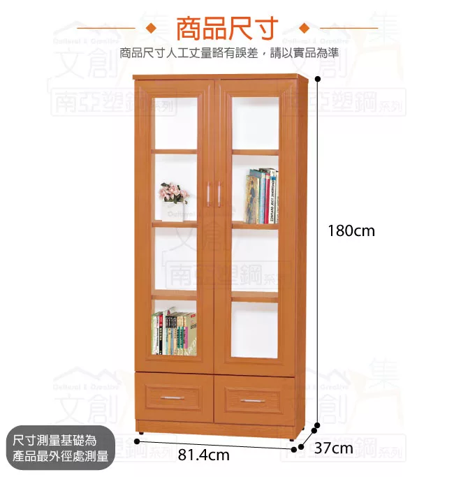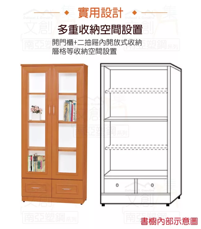 【文創集】海思 環保2.7尺南亞塑鋼四門二抽書櫃/收納櫃 產品採用第一品牌-台製南亞塑鋼舒美板+五金滑軌結構材質,整體材質採用防水+防燃+無甲醛安心塑鋼材質製造 ,搭配二抽屜+開門櫃+內收納層格等便利設計,防止受潮,增加支撐力,堅固不會塌陷,全由專人配送到家,專業安心服務,替你省下更多時間!