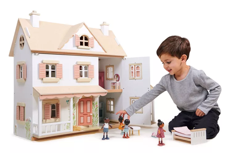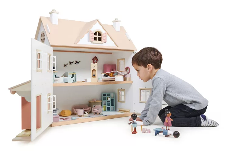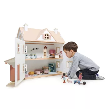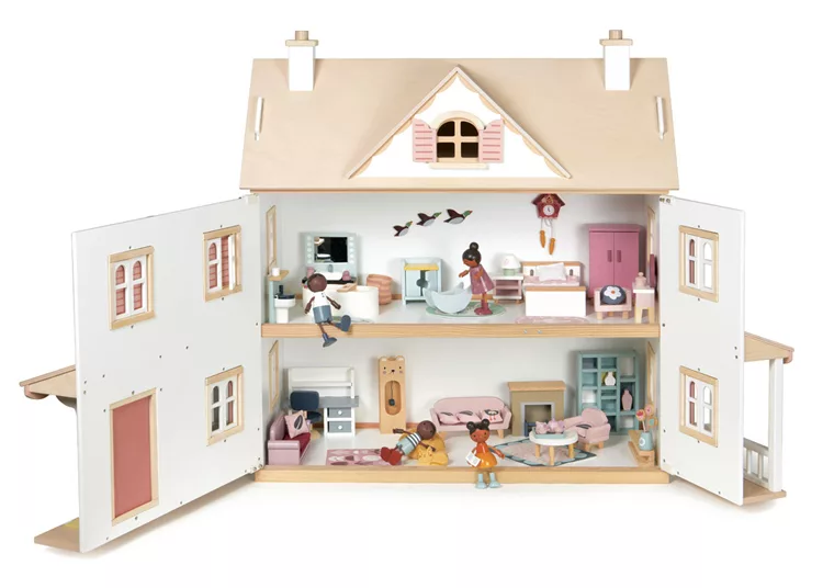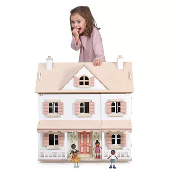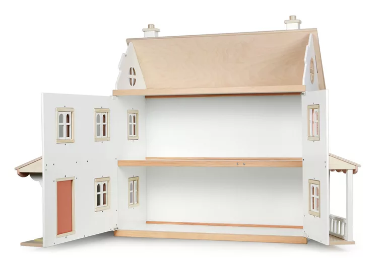 每扇窗都可以開合,屋頂山牆下還有一扇小窗。内部有四個房間及閣樓空間,可用來佈置我們的娃娃屋家具。屋頂為可拆卸式設計,讓遊戲更加便利。