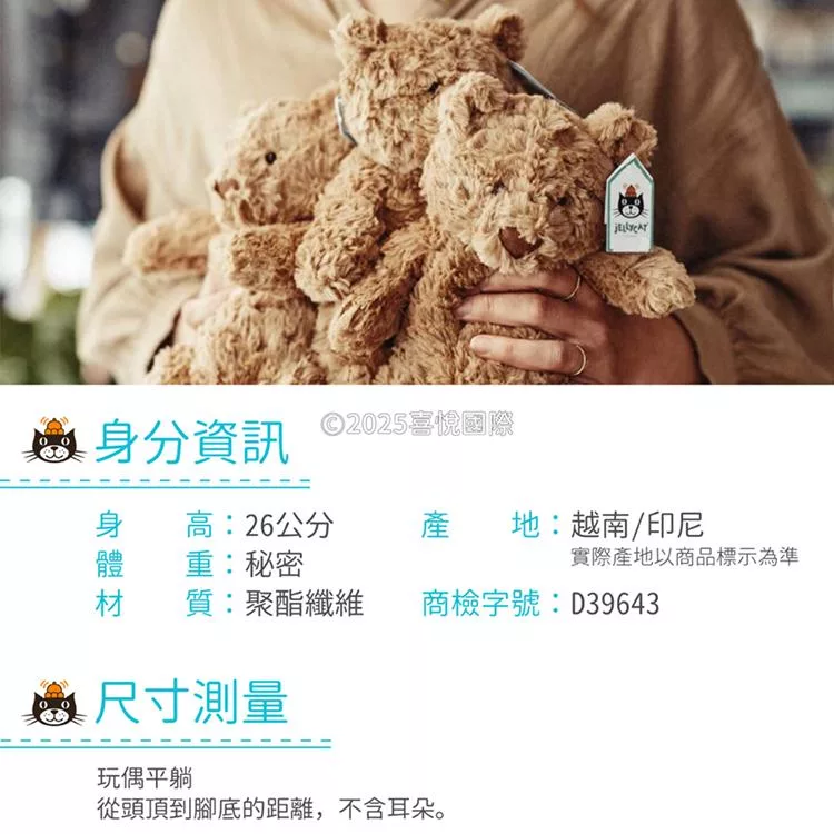 英國 JELLYCAT 26cm 巴賽羅熊/熊麻吉 Bartholomew Bear
