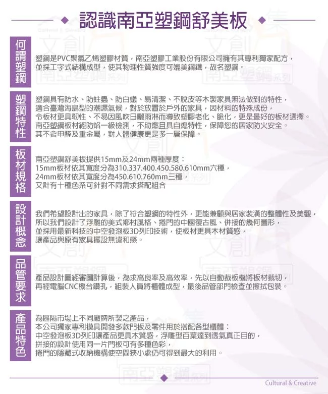 產品採用第一品牌-台製南亞塑鋼舒美板+五金滑軌結構等材質