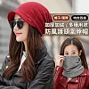 【EZlife】加厚加絨多用防風護暖圍脖帽- 酒紅