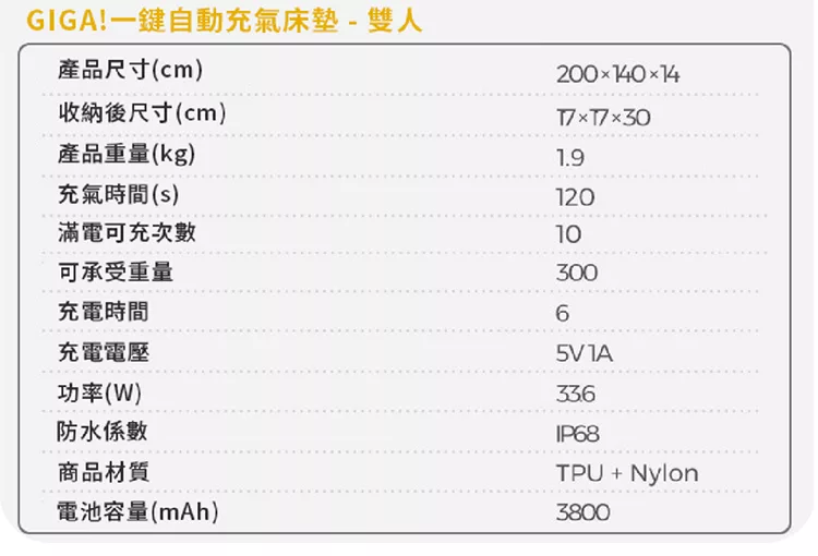 Aerogogo 一鍵全自動充氣睡墊 - 雙人