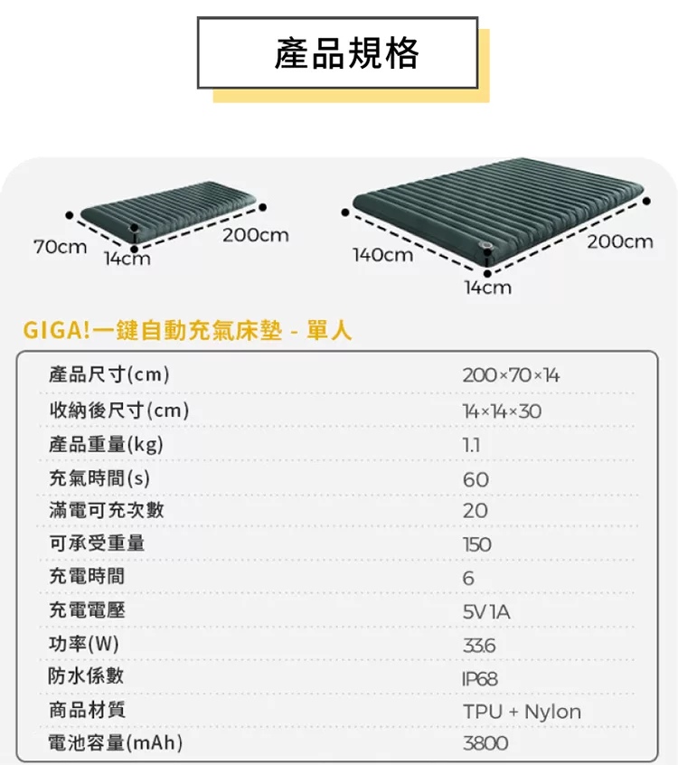 全自動充氣加厚單人充氣床墊-贈一次性床單 充氣床 露營床 充氣床墊 PVC充氣床