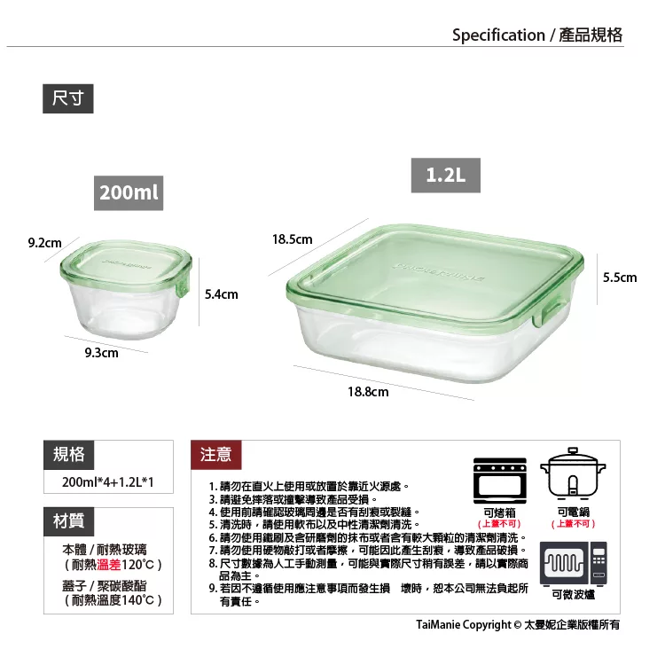 Snapware 康寧密扣 可拆扣分隔玻璃保鮮盒超值3件組-多色可選 C14-綠色