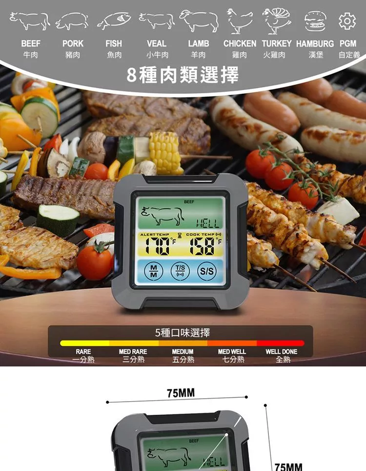 多功能料理溫度計 觸控式螢幕 防水探針