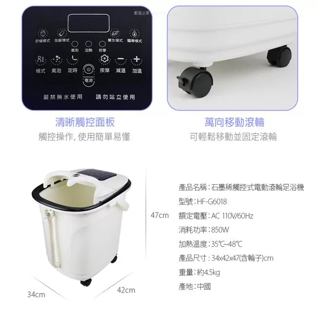 勳風石墨稀觸控式電動滾輪足浴機/泡腳機 HF-G6018