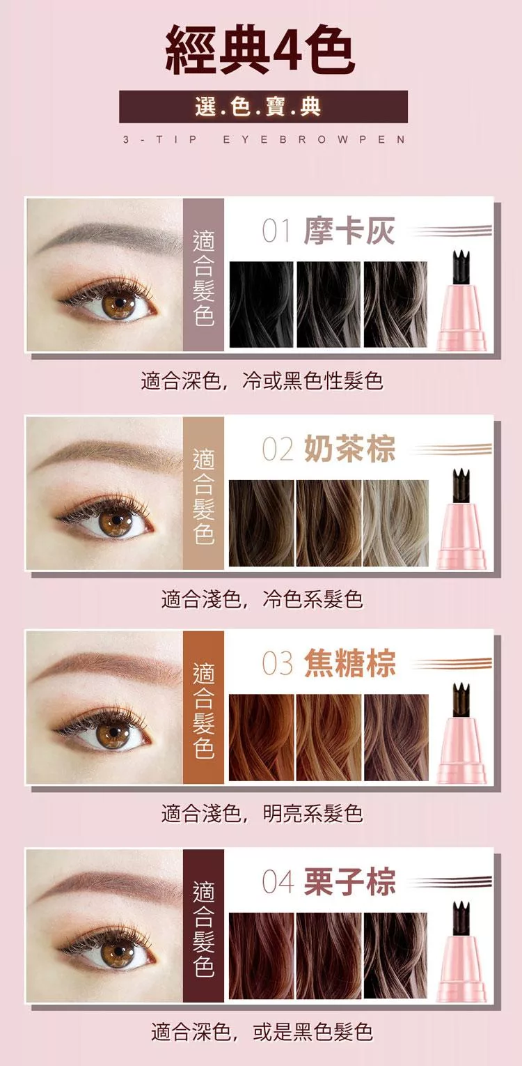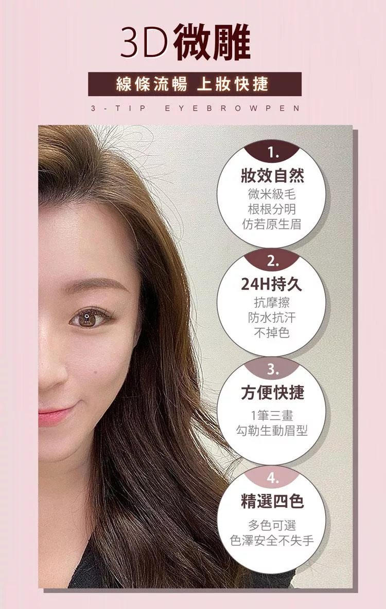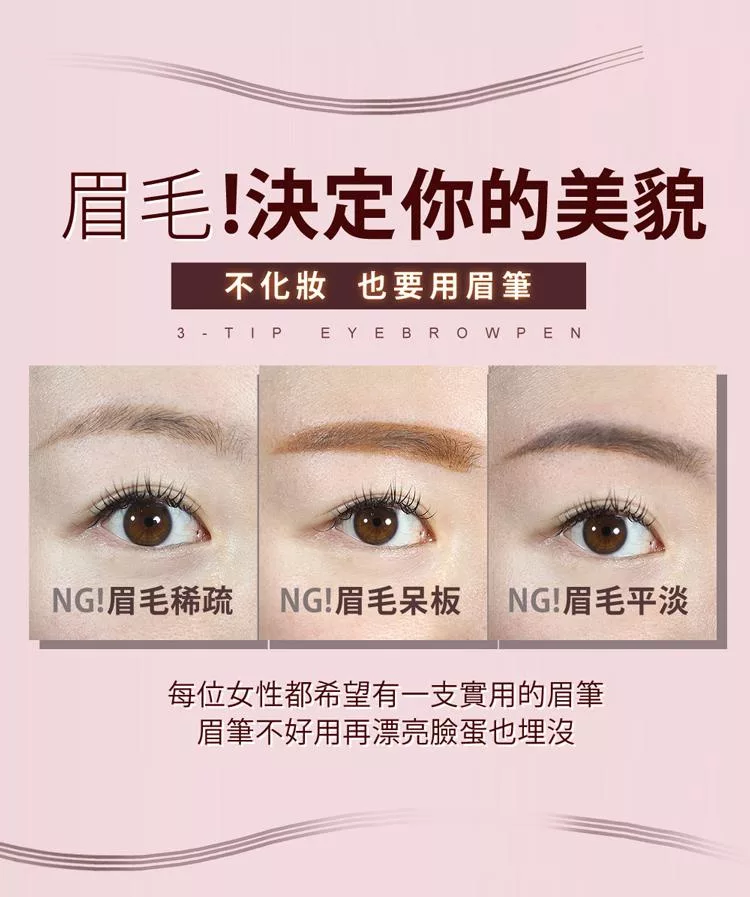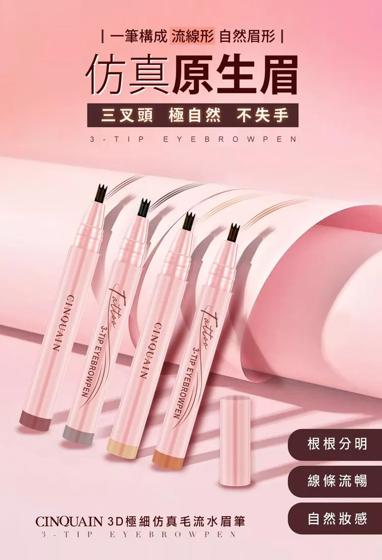 【CINQUAIN 思珂】3D極細仿真毛流水眉筆3入(共4色) 奶茶棕