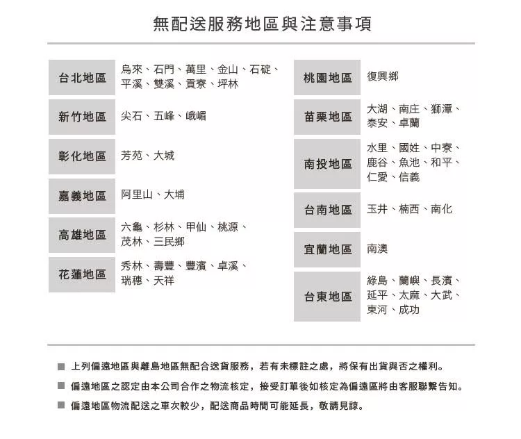 - 2除特殊商品送達時間於產品說明中另有標註外,原則上商品將於訂單完成、付款成功後 7 個工作天內送達(不含週六日)。