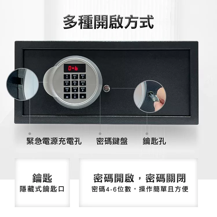 ◆多種開啟方式,密碼、鑰匙,給你更多安全選擇。