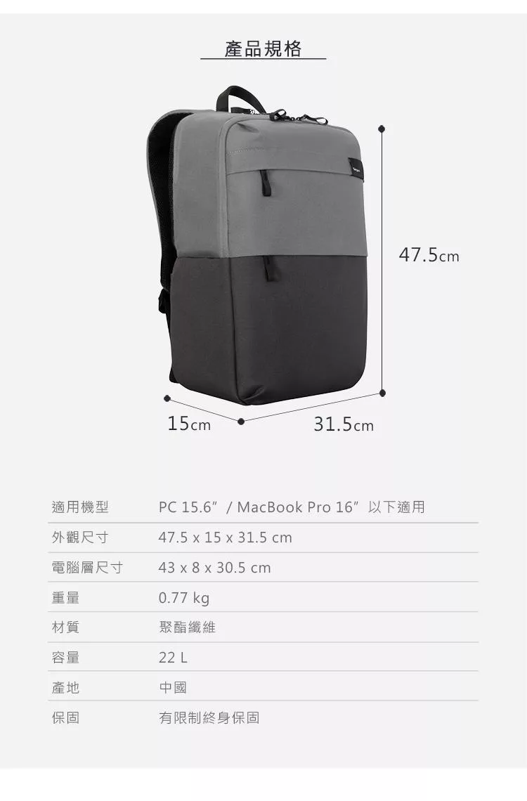 Targus Sagano EcoSmart 15.6 吋旅行後背包時尚、輕巧和多功能的日常背包,從工作日的例行公事到週末出遊,都是完美的選擇。