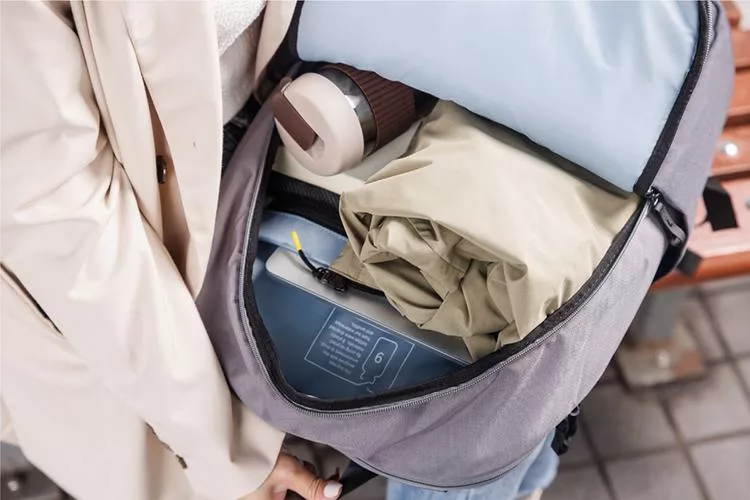 背部側邊拉鍊打開附有專用防雨罩,單手取出、一罩套上,下雨天不必擔心背包內的 3C 用品、文件會淋溼。