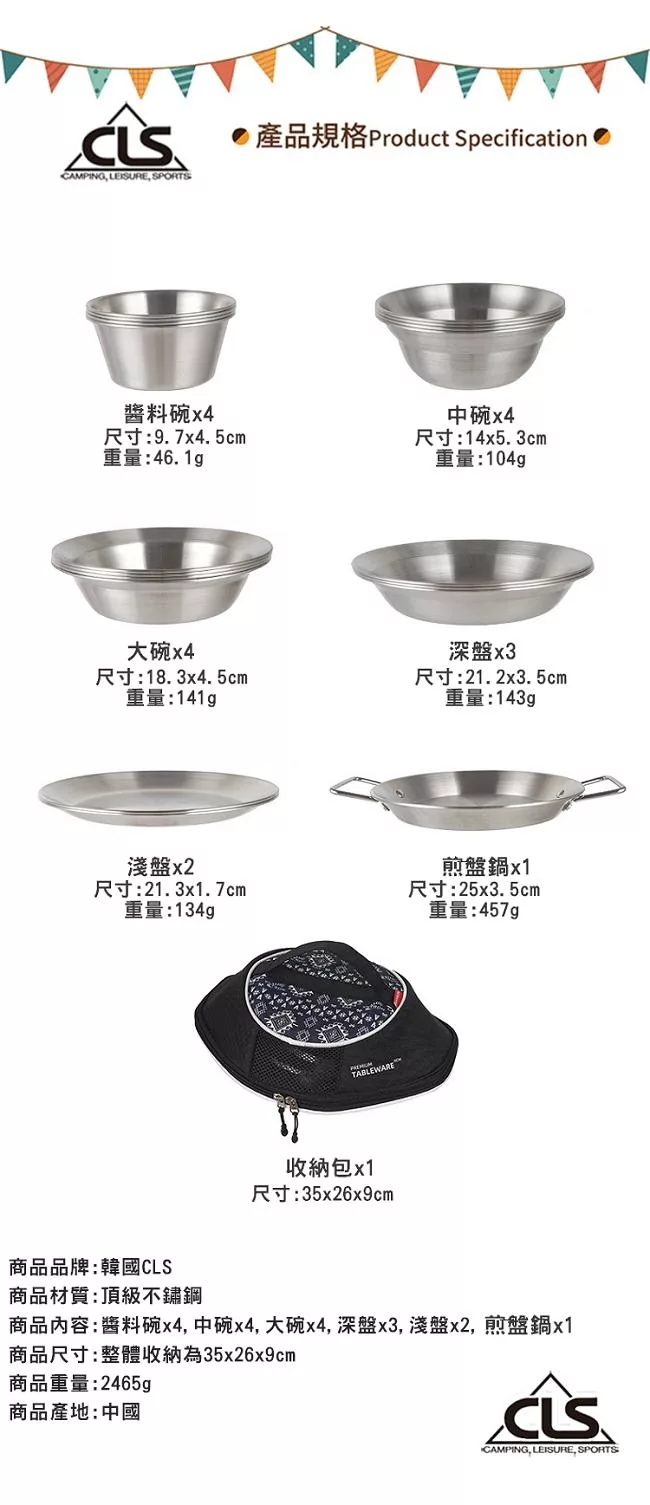 【韓國CLS】戶外套鍋露營不鏽鋼14件組 煎鍋 煮鍋 野炊套裝 機車露營 登山 野營