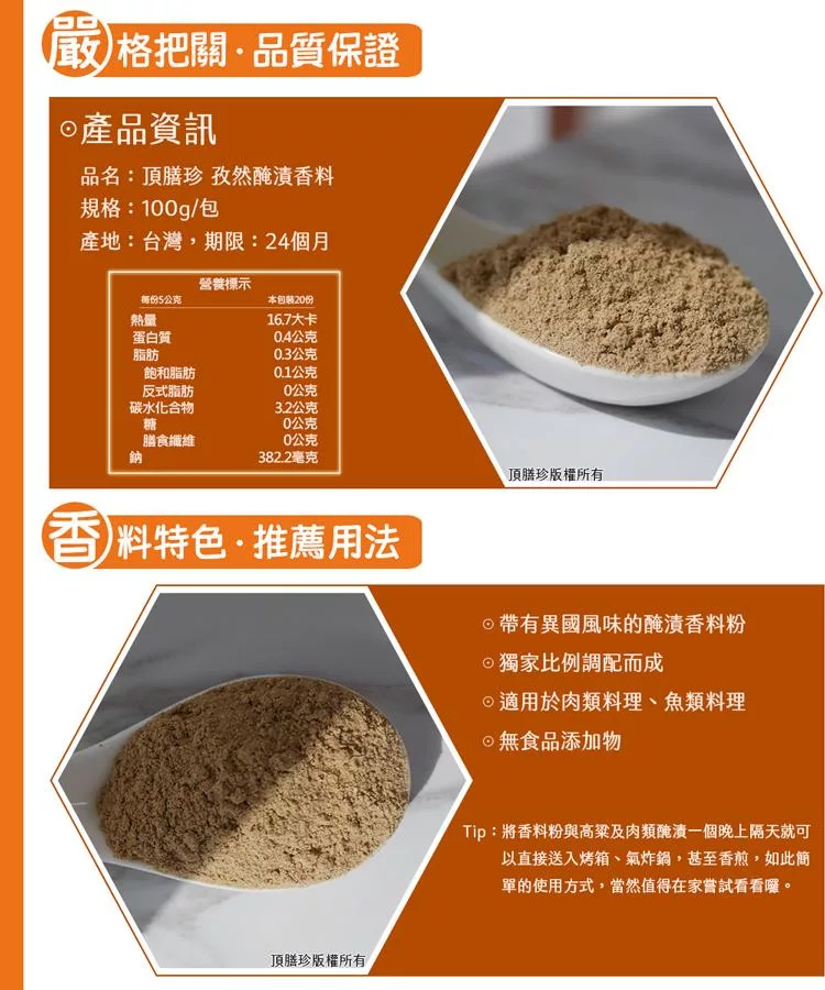 【頂膳珍】孜然醃漬香料100g(1包)