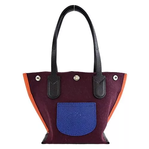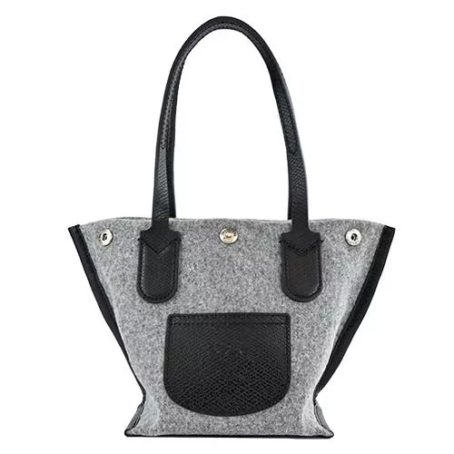 LONGCHAMP ESSENTIAL系列羊毛拼接帆布撞色前口袋肩背包(迷你) 酒紅
