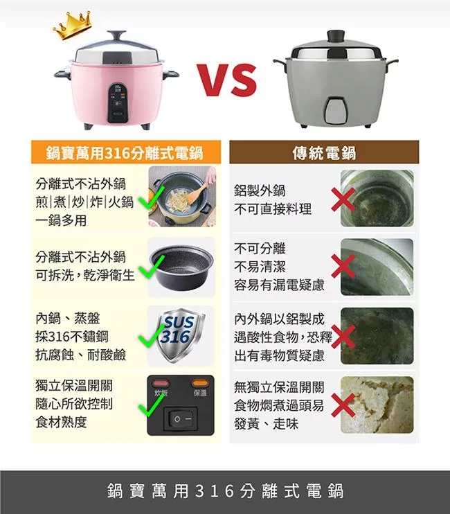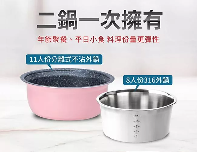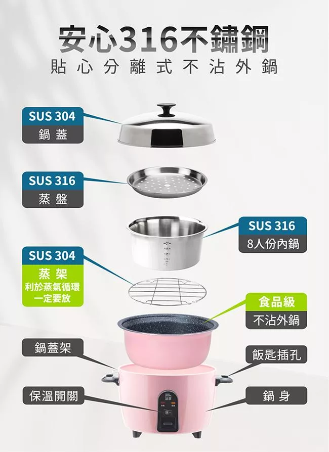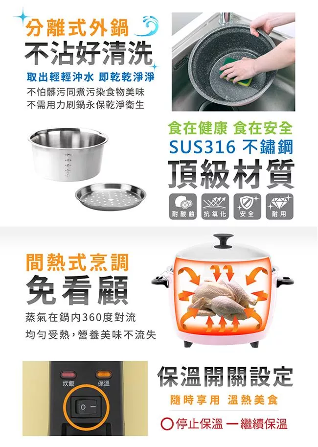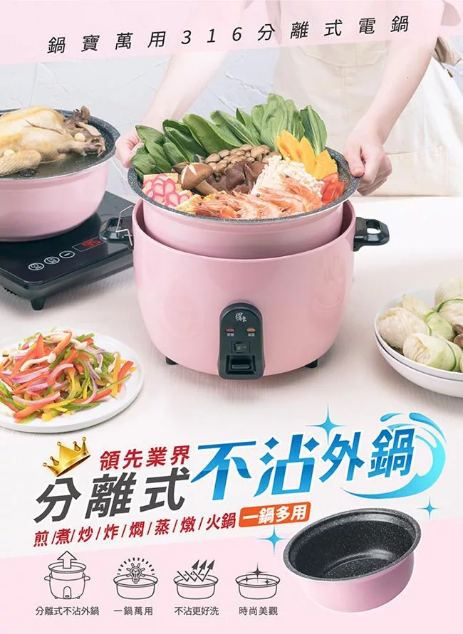 品名:【鍋寶】萬用316分離式電鍋8人份-茶花粉