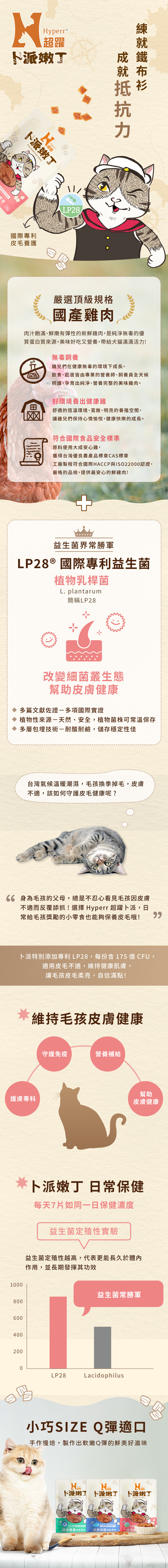 Hyperr超躍 皮毛養護 貓咪卜派嫩丁機能零食 3入 | 寵物零食 貓零食 益生菌 LP28