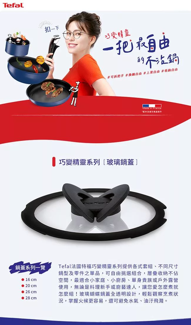 Tefal法國特福 巧變精靈系列16CM玻璃蝴蝶鍋蓋