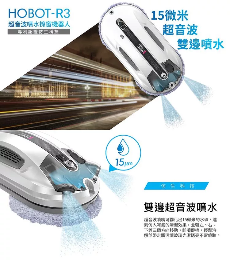 【HOBOT 玻妞】超音波雙邊噴水擦玻璃機器人 HOBOT-R3