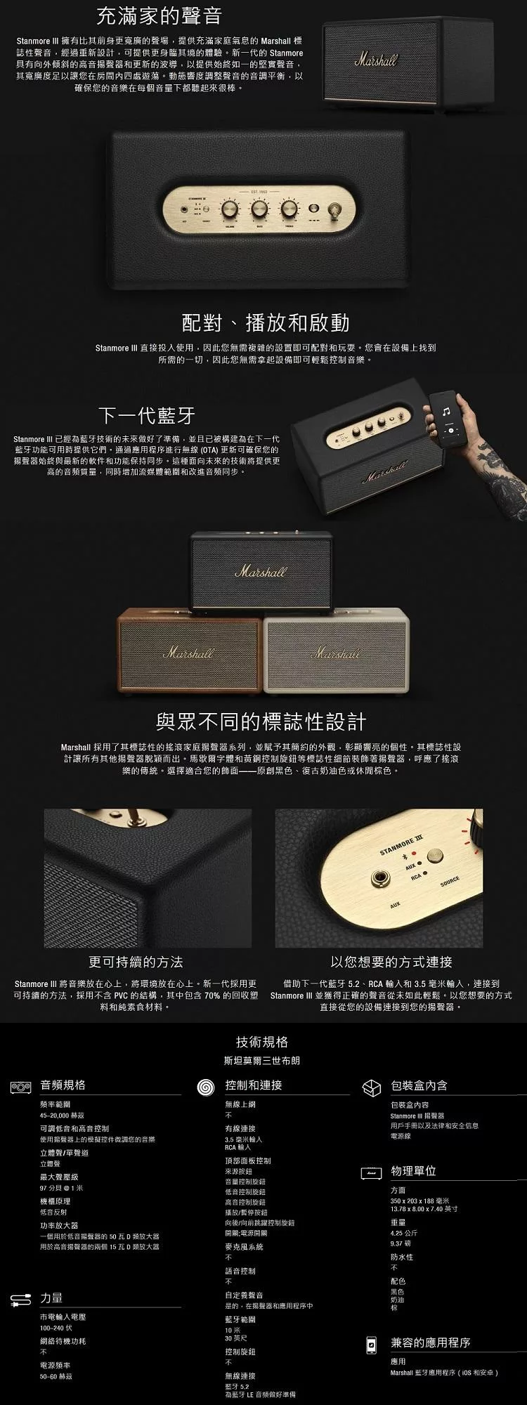 【限時優惠】Marshall Stanmore III 第三代 藍牙喇叭 台灣公司貨保固 經典黑