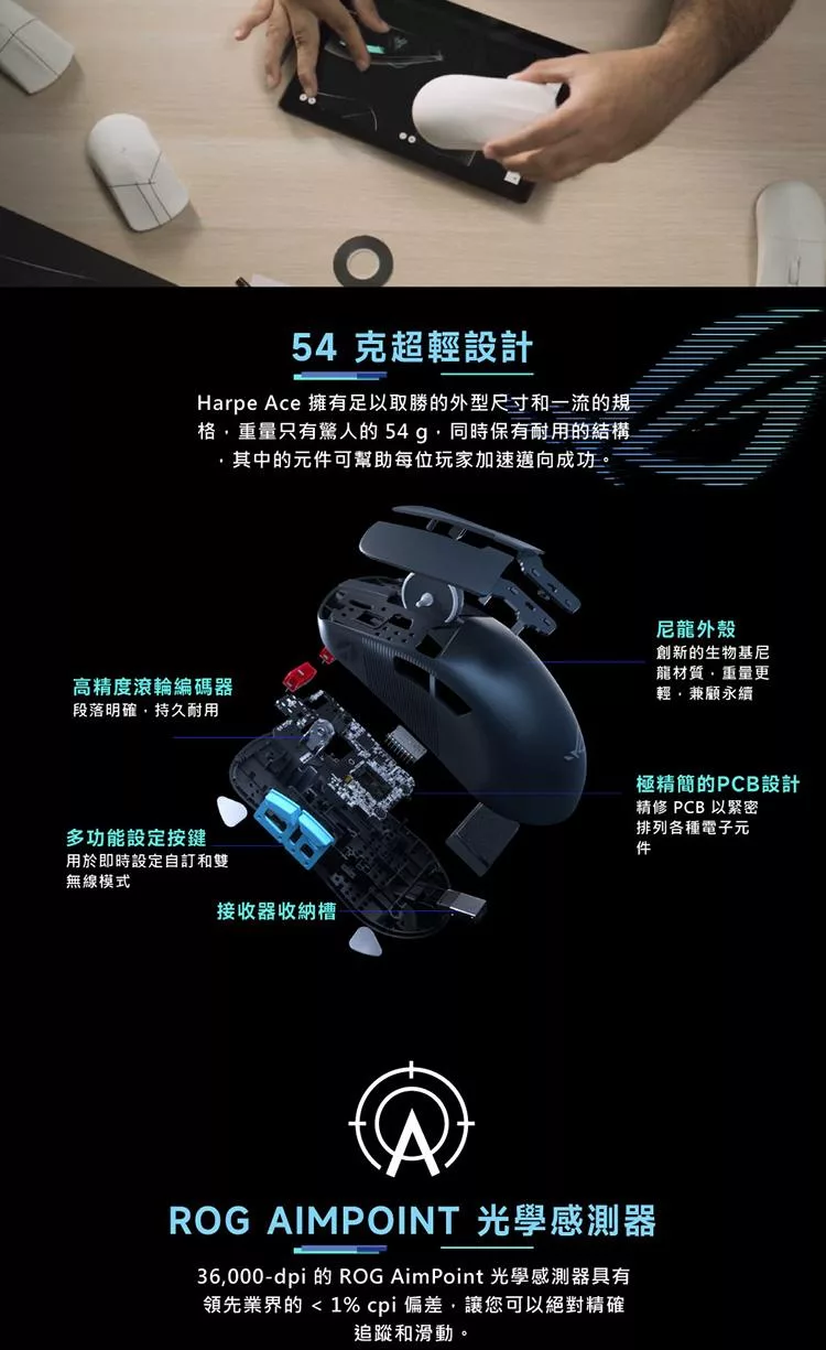 【送原廠ROG電競鼠墊】ASUS 華碩 ROG Harpe Ace Mini 半對稱電競滑鼠 白色