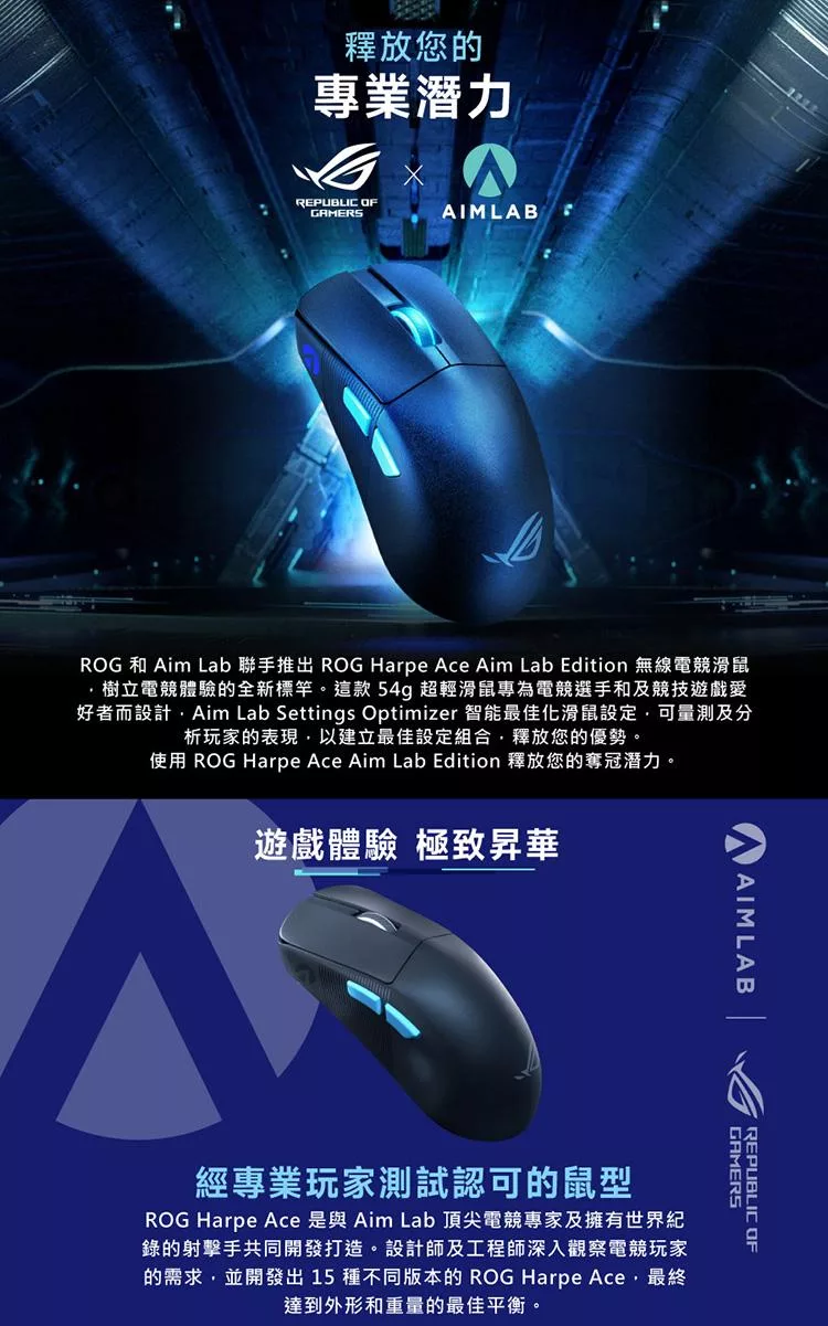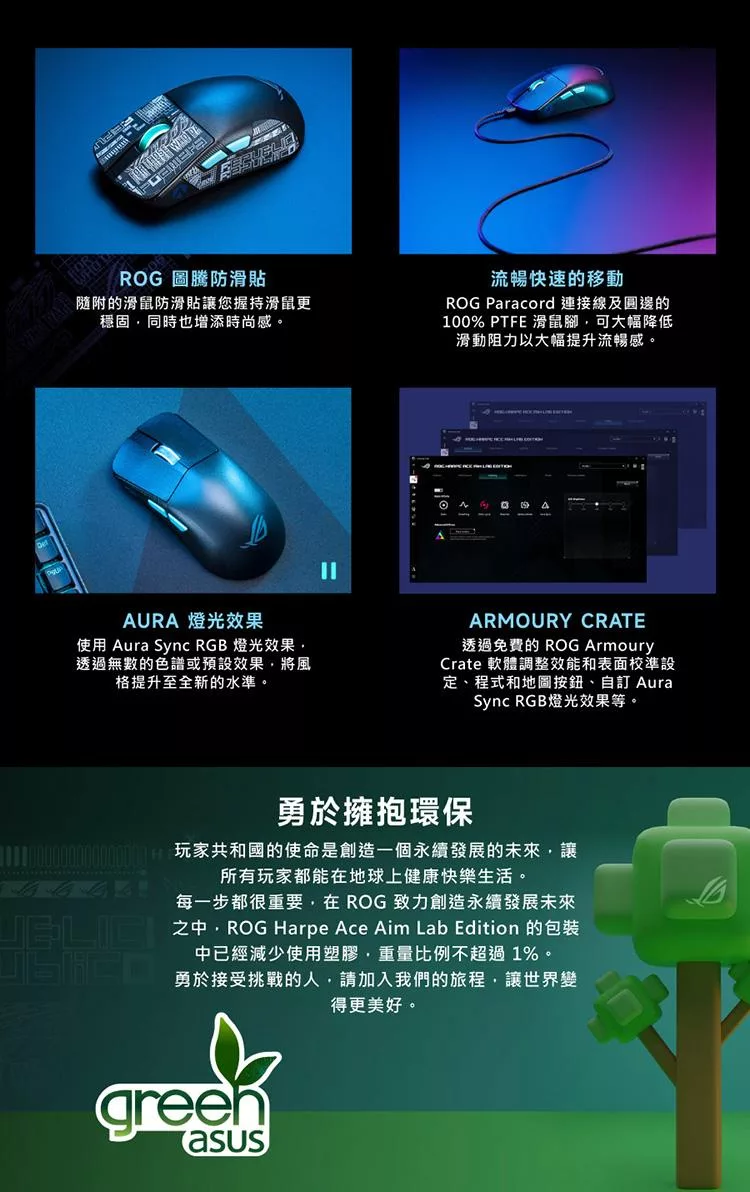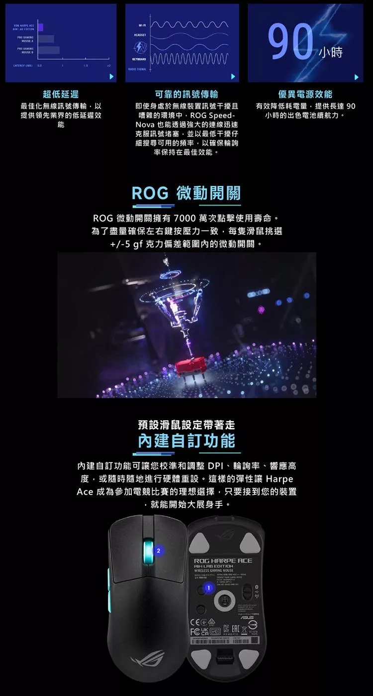 【送原廠電競鼠墊】ASUS 華碩 ROG Harpe II Ace 無線三模電競滑鼠 黑色