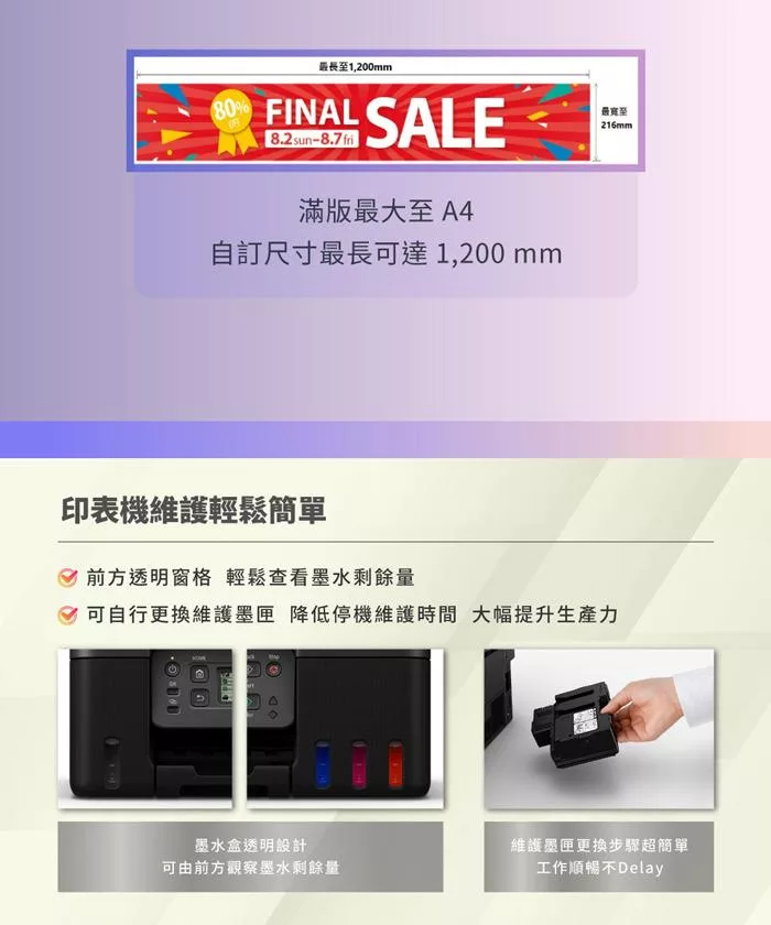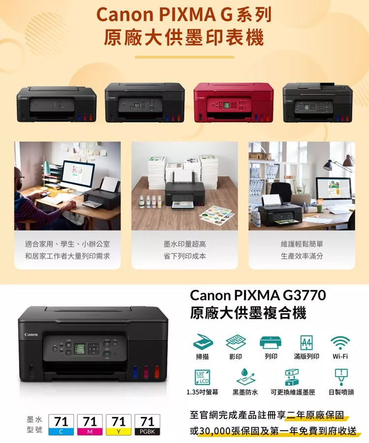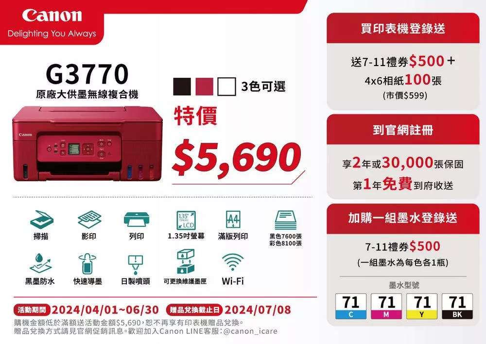 ★請注意:印表機購買金額若低於贈品最低登錄金額(詳見官網),恕不再適用原廠上網登錄送活動。