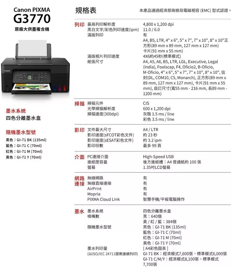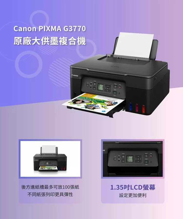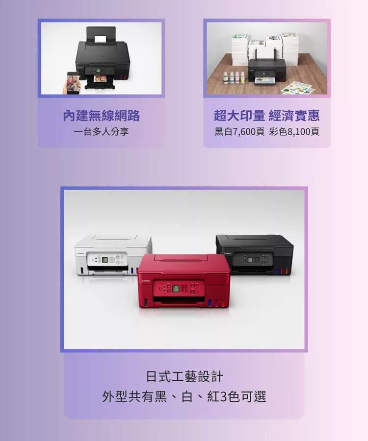 Canon PIXMA G3770原廠大供墨複合機(紅色)