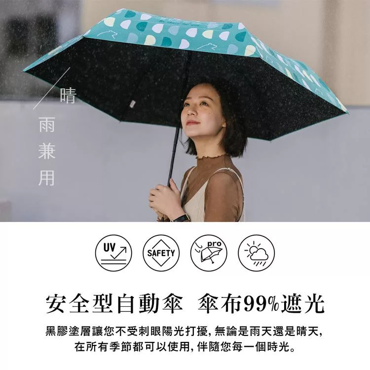 【德國boy】抗UV三折防風防潑水自動開收傘_ 海霧藍