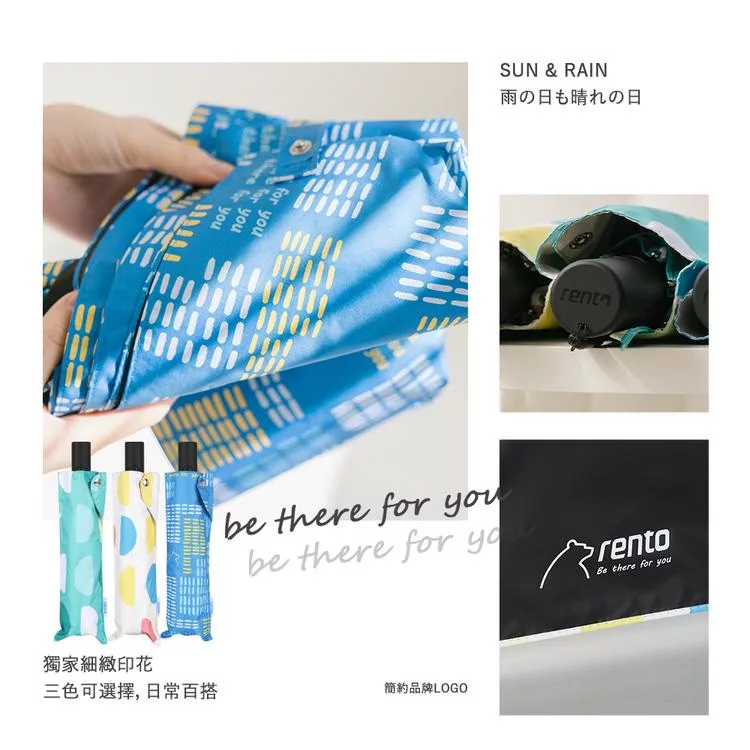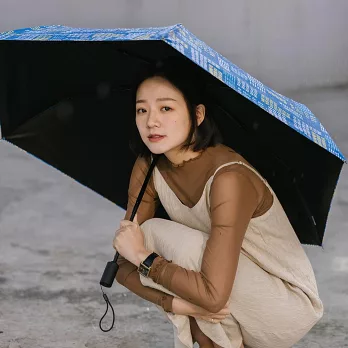 【德國boy】抗UV三折輕收防曬自動傘_ 幾何波點(藍)