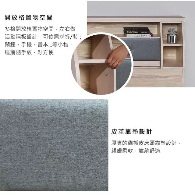 IDEA-米森質感貓抓皮5尺標準雙人床架三件組(床頭片+床底+床頭櫃) 淺灰色款