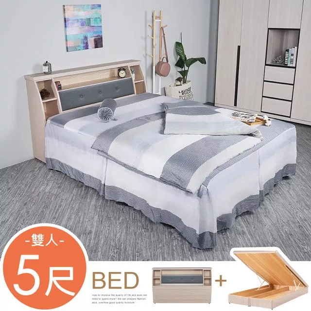 Homelike 喜家居附插座收納掀床組-雙人5尺(2542)