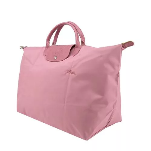LONGCHAMP LE PLIAGE GREEN系列刺繡短把再生尼龍摺疊旅行袋(大) 紅石榴