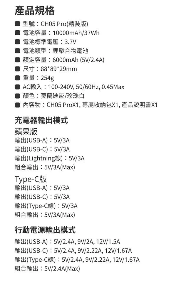 【台灣製造】E-books B85 五合一LED自帶四線行動電源37Wh 白 白