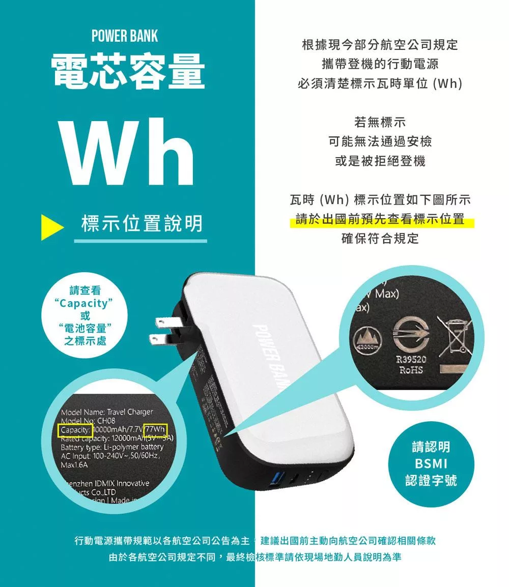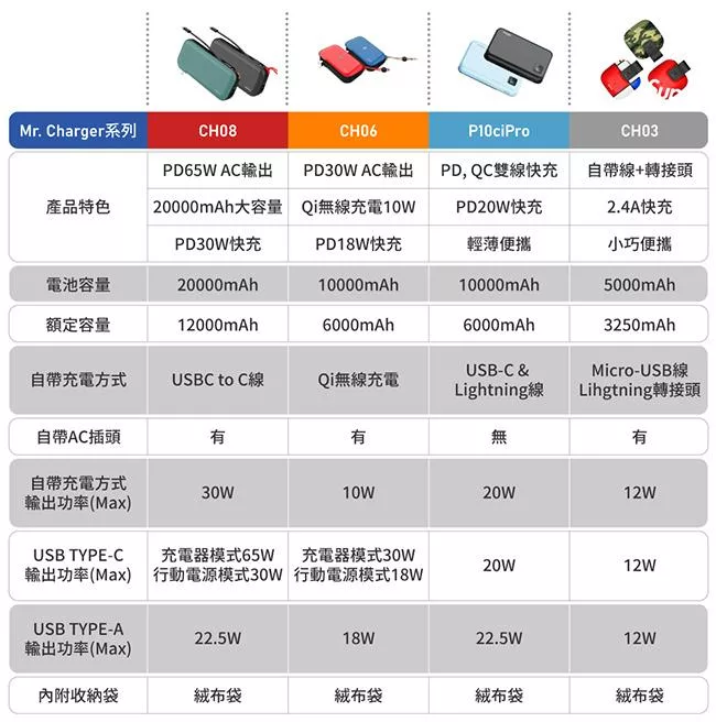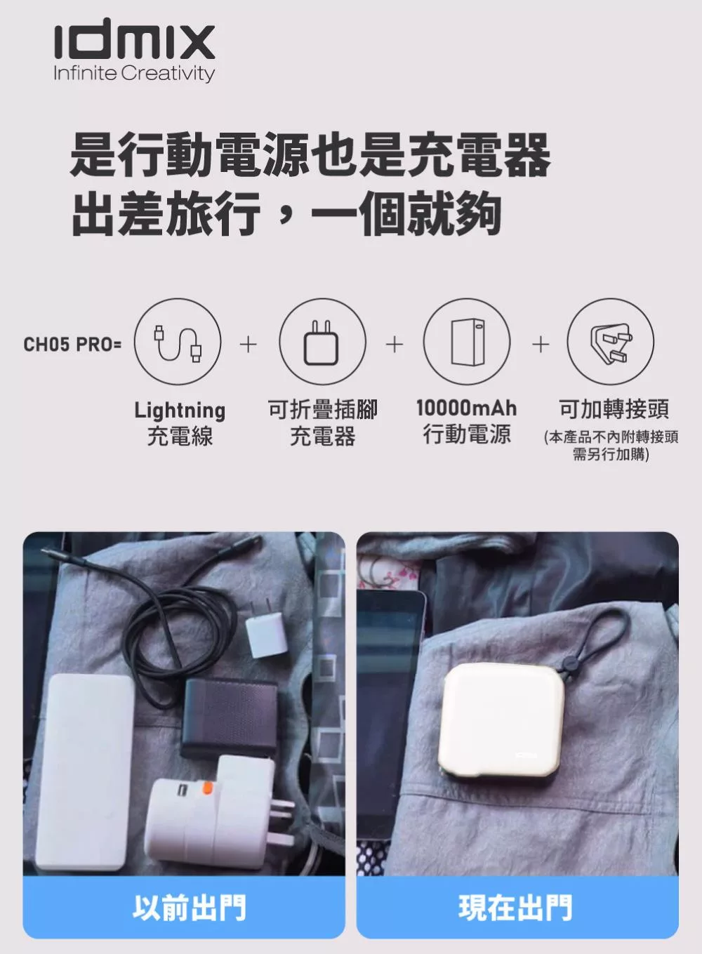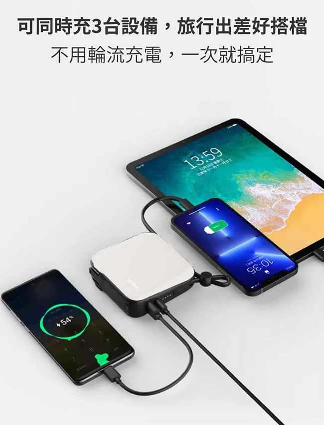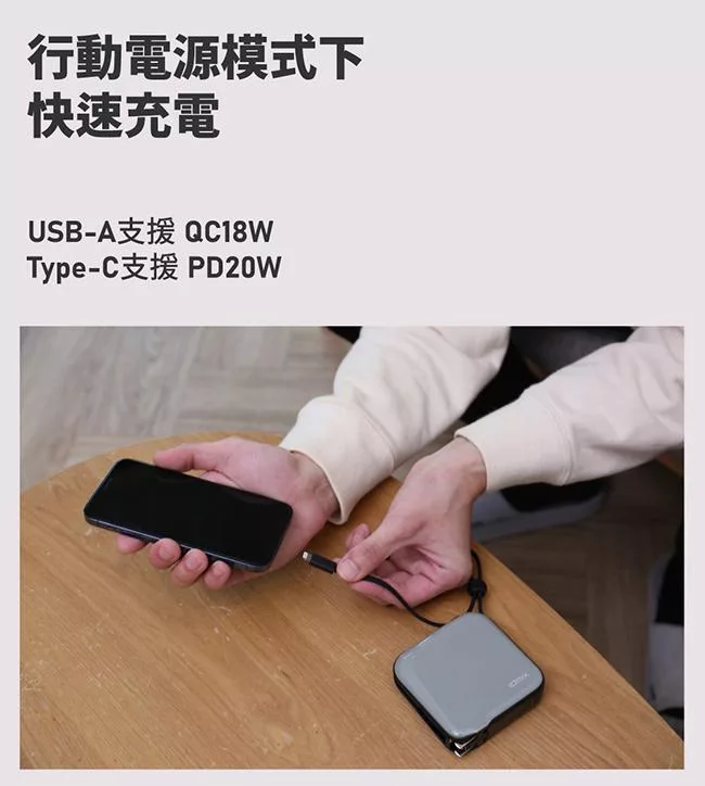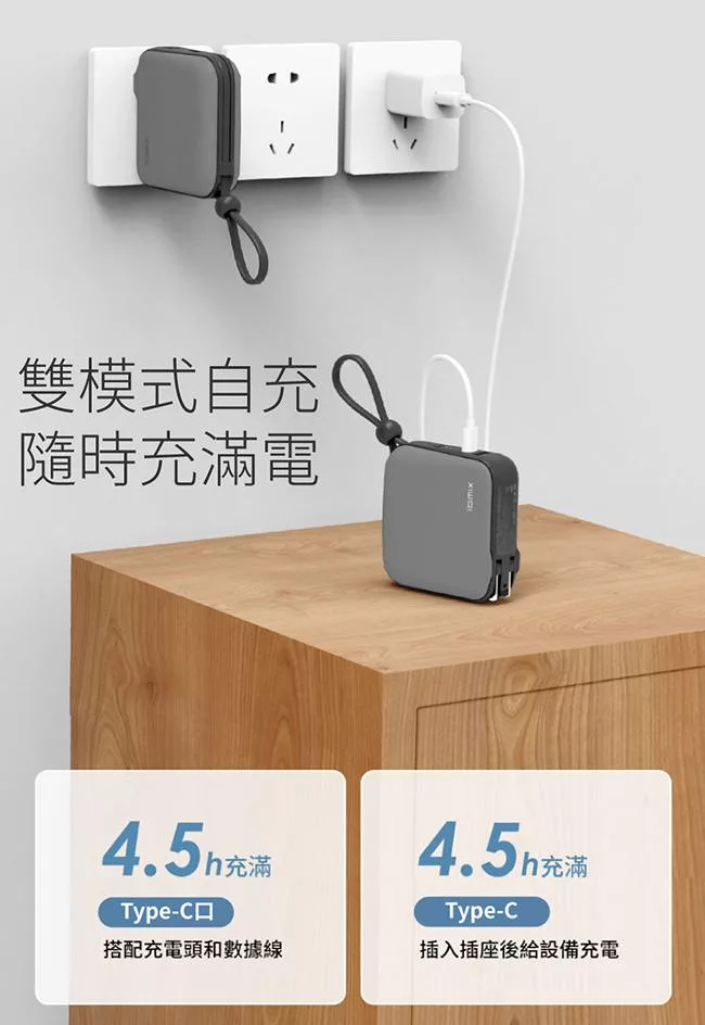 【ENABLE】台灣製造 15月保固 Traveler+ 10000mAh 20W PD/QC 自帶插頭雙向快充行動電源- 午夜藍
