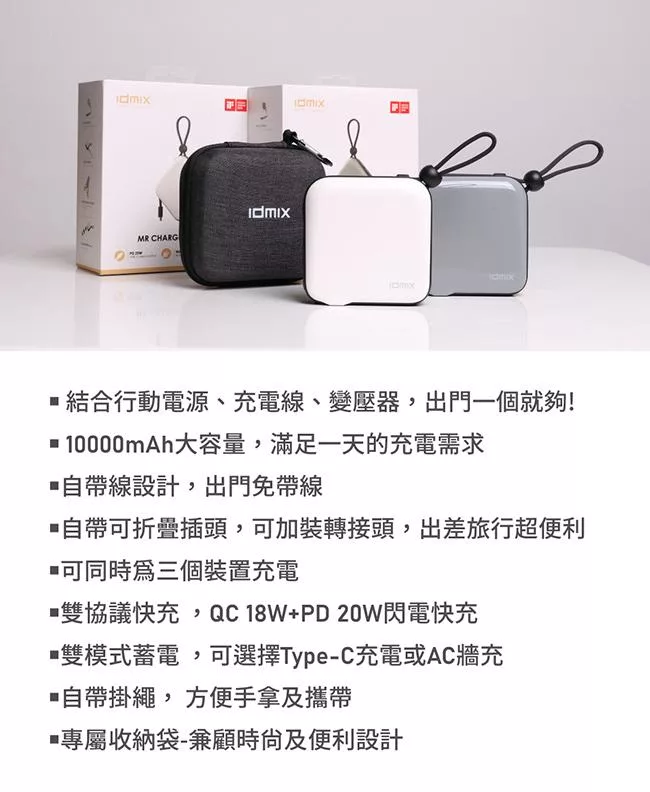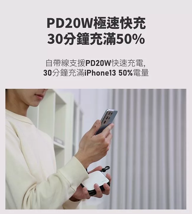 SOU.SOU十數昆 10000mAh自帶雙線四輸出快充行動電源37Wh 白